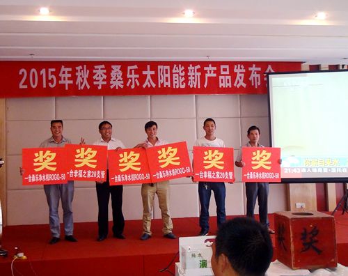 日前,桑樂公司2015年秋季太陽能新品發(fā)布會(huì)在貴州省興義市舉行,40余位鄉(xiāng)鎮(zhèn)經(jīng)銷商參加了此次會(huì)議。會(huì)議的主題是“發(fā)展終端,布局終端,決勝終端。”