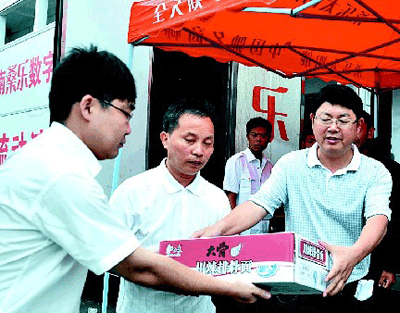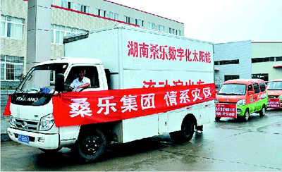 為此,桑樂湖南基地負責人耿剛及相關領導班立杰、岳陽市經(jīng)銷商劉芹每連夜召開緊急會議全面部署賑災事宜,募捐10萬元救災物資。6月13日,耿剛、班立杰、劉芹每率數(shù)十名員工與記者隨數(shù)臺裝滿十萬救災物資的專車從湖南基地出發(fā),驅(qū)車直達岳陽重災區(qū)岳陽縣相思鄉(xiāng)、臨湘縣詹橋災區(qū)賑災。