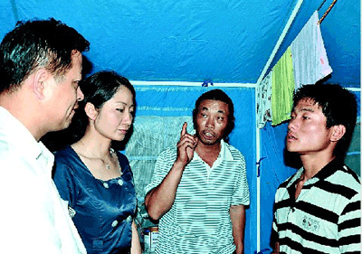 桑樂公司將滿滿的幾車救災物資交到災民安置點后,隨相關負責人一同進入集中安置點進行慰問。耿剛等人看到一座座藍色的災民帳篷,災民圍坐帳篷邊,心情十分沉重。當他們走到15歲的毛羅健床前,看著眼前的4張遺像,想到這個孩子一夜之間就失去了父母、爺爺奶奶,內(nèi)心都十分難受,一邊將數(shù)箱救災物資送到他手邊,一邊撫摸著他的手鼓勵他勇敢面對今后的學習生活。