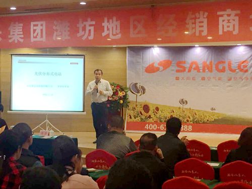 日前,桑樂山東濰坊地區(qū)經(jīng)銷商培訓動員大會在濰坊圣基大酒店順利舉行,桑樂集團公司副總馮磊、光伏事業(yè)部經(jīng)理楊桂紅蒞臨了本次會議,并做了重要講話和培訓。