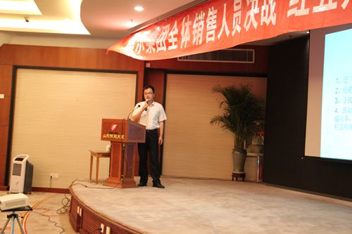 集團(tuán)董事長王雪廣最后做了總結(jié)發(fā)言,董事長指出,近期隨著好品山東,湖南衛(wèi)視快樂大本營,南京高鐵站等密集的廣告宣傳,以及財富計劃的策劃工作,樣板活動的推動,新品發(fā)布工作,企業(yè)產(chǎn)品豐富了,抓緊行動,培養(yǎng)新商,零售市場要帶動工程市場,加快培訓(xùn)銷售人員,搞好大規(guī)模的活動,摒棄山頭主義,本本主義,高度統(tǒng)一思想,力爭每年遞增30%,借本次會議的東風(fēng),到五月底實現(xiàn)樣板活動過百,實現(xiàn)“紅五月百團(tuán)大戰(zhàn)”,大會圓滿成功。
