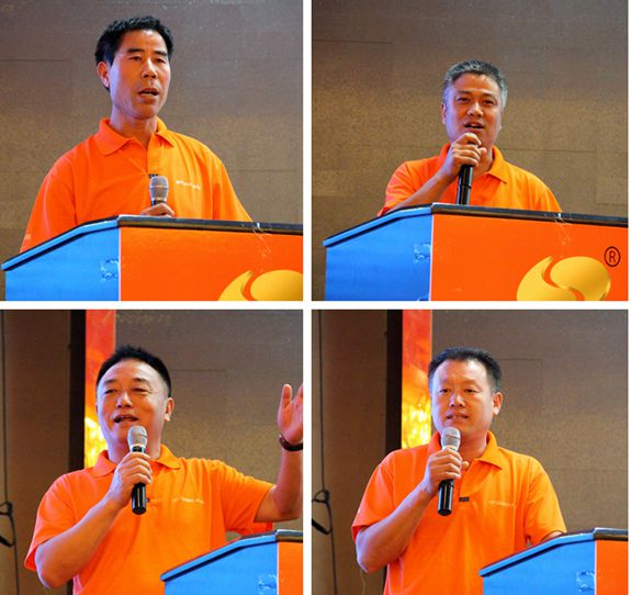 華東經(jīng)銷商徐州邳州曹輝,汊河鎮(zhèn)李輝兵,沛縣劉立東,鹽城市區(qū)左曙光,宿遷泗陽黃亞明,南通啟東聞建忠,海門陸衛(wèi)高等優(yōu)秀經(jīng)銷商從活動(dòng)促銷、光伏、凈水機(jī)等方面分享了自己的銷售心得。