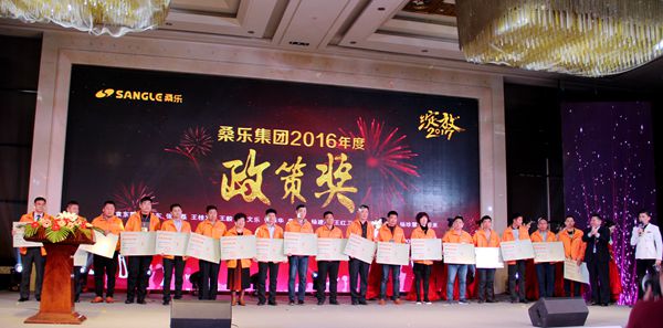 大會(huì)中桑樂集團(tuán)陸續(xù)頒布了“2016年最佳合作伙伴”獎(jiǎng)和“2016年十大新銳合作伙伴”獎(jiǎng),感謝每一個(gè)經(jīng)銷商們?cè)陉柟馐聵I(yè)征程中對(duì)桑樂的信任與支持,同時(shí)感謝每一個(gè)桑樂人在各自崗位上為陽光夢(mèng)想的努力奮斗,在舞臺(tái)上捧著獎(jiǎng)杯的他們,臉上洋溢著燦爛的笑容,在場(chǎng)所有人都相信,這一刻屬于他們;榮耀的斬獲更激勵(lì)著在座經(jīng)銷商們,為桑樂的陽光事業(yè)不懈奮斗。