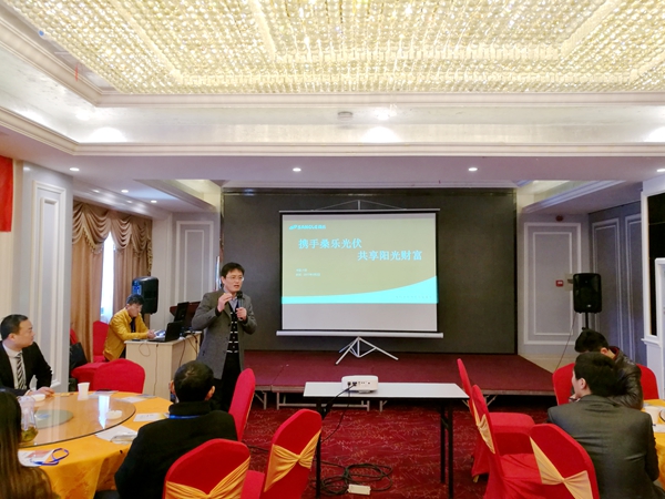 首先,桑樂集團光伏部董占河部長對推介會做了家庭光伏電站安裝和并網(wǎng)的分享,針對當前國家分布式發(fā)電突飛猛進的勢頭,桑樂經(jīng)銷商和銷售人員作為光伏產(chǎn)業(yè)從業(yè)者如何快速占領市場。桑樂集團作為進軍農(nóng)村市場30年的太陽能領軍企業(yè),隨著光伏生產(chǎn)線的投產(chǎn)運營,將會為農(nóng)村光伏市場的各級經(jīng)銷商提供堅強的后盾。