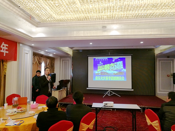 最后,安徽分公司聶來俊總經(jīng)理做動員講話。指出,3.15消費者權益保護日即將到來,光伏事業(yè)的盛宴已經(jīng)開啟,號召鄉(xiāng)鎮(zhèn)經(jīng)銷商要抓住公司提供的3.15光伏優(yōu)惠政策,做好桑樂光伏市場銷售。