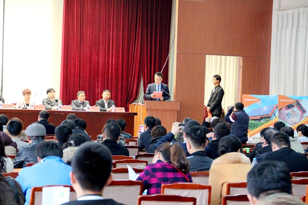 桑樂河北分公司總經(jīng)理趙龍代表桑樂集團(tuán)向與會(huì)者做了熱情洋溢的歡迎詞,趙總講述了桑樂公司的發(fā)展歷程,桑樂一直立足新能源,專注太陽能產(chǎn)業(yè)的發(fā)展,近年來在光伏產(chǎn)業(yè)嶄露頭角,經(jīng)過30年經(jīng)驗(yàn)積累和技術(shù)沉淀,多元化產(chǎn)品贏得了市場,銷售額穩(wěn)步提升。針對(duì)當(dāng)前國家分布式發(fā)電突飛猛進(jìn)的勢(shì)頭,近年來桑樂在光伏產(chǎn)業(yè)嶄露頭角,光伏生產(chǎn)線助力光伏銷售的發(fā)展。桑樂為農(nóng)村光伏市場提供了堅(jiān)強(qiáng)的后盾,桑樂經(jīng)銷商快速占領(lǐng)市場,展現(xiàn)了桑樂光伏產(chǎn)業(yè)的的美好愿景!
