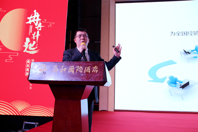 董事長王雪廣先生蒞臨會議現(xiàn)場并發(fā)表主旨演講,首先,他代表桑樂集團(tuán)全體員工對不辭辛勞,遠(yuǎn)道而來的桑樂家人們表示熱烈的歡迎,并感謝這一年來、三年來、三十年來他們的信任、陪伴和支持。會議當(dāng)天正值大雪時(shí)節(jié),董事長在現(xiàn)場激情濃厚的氣氛中有感而發(fā),以一首《沁園春·雪》與現(xiàn)場的經(jīng)銷商們共勉,深刻表達(dá)“數(shù)風(fēng)流人物,還看今朝,還看桑樂”的豪邁壯志。他在發(fā)言中強(qiáng)調(diào),桑樂集團(tuán)依靠雄厚的財(cái)力物力加大技術(shù)和產(chǎn)品投入,持續(xù)打擊市場的假冒仿冒產(chǎn)品,在未來桑樂將研發(fā)的“十二生肖”系列產(chǎn)品全面布局市場,創(chuàng)造獨(dú)家產(chǎn)品市場標(biāo)識,令仿冒者望而卻步,同時(shí)集團(tuán)響應(yīng)國家政策,布局多元化產(chǎn)品戰(zhàn)略,強(qiáng)力斥資進(jìn)軍燃?xì)獗趻鞝t領(lǐng)域,深度挖掘市場潛力,開辟藍(lán)海營銷渠道。