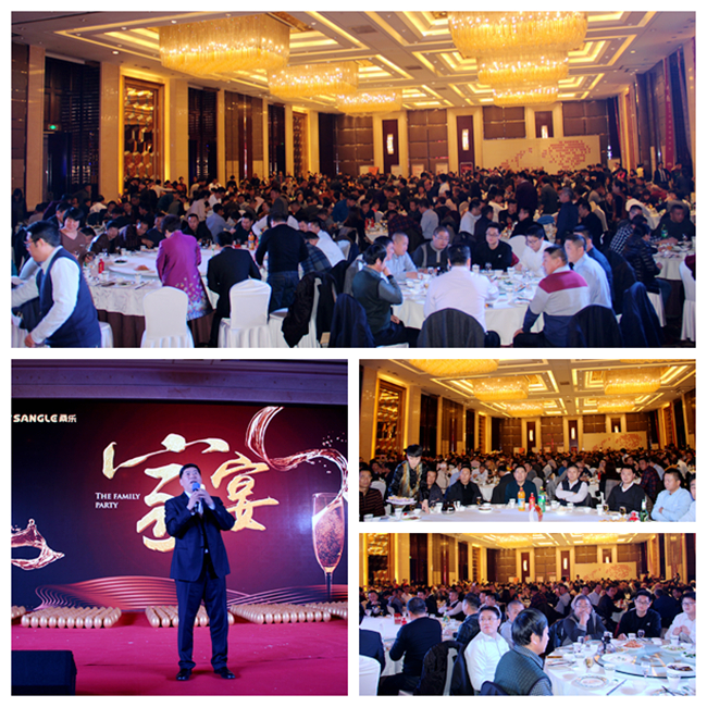 在董事長一段慷慨激昂的祝酒辭后,在場所有的經(jīng)銷商們一起享用具有齊魯特色的晚宴,觥籌交錯(cuò),把酒言歡,貫穿整個(gè)晚宴,呈現(xiàn)出桑樂大家庭的歡樂和諧氛圍。