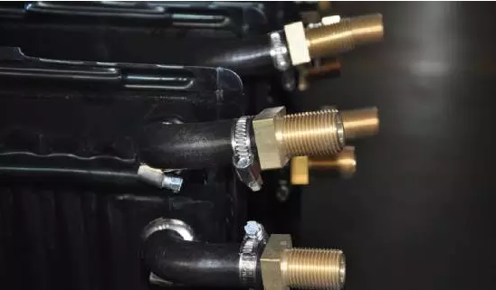 IMSIA一行在現(xiàn)場(chǎng)看到,全流道不銹鋼平板太陽能集熱器傳熱介質(zhì)的進(jìn)、出口在均在背部同側(cè)探出,出口與四棱純銅螺紋件用特種橡膠管相連,該項(xiàng)創(chuàng)新杜絕了安裝作業(yè)中扳手卡不住、接口旋不緊或者扭壞焊口的現(xiàn)象發(fā)生。此外,背部接口的設(shè)置更方便整機(jī)陣列整體封裝處理,在大型工程中應(yīng)用優(yōu)勢(shì)凸顯。