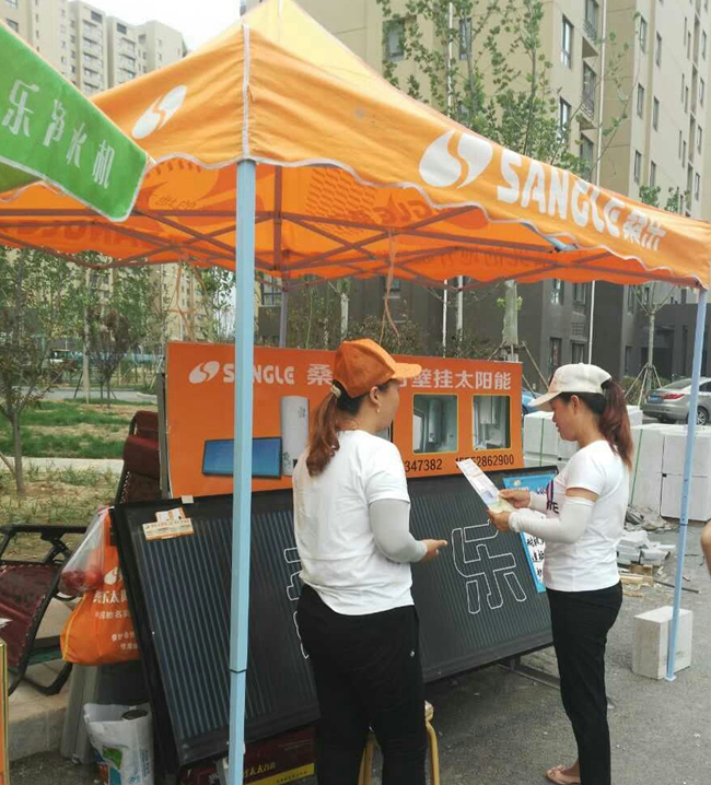 城市新建高層越來越多,在濟南市區(qū)新建住宅樓基本都是三十多層的高層,這種用戶只能選擇陽臺壁掛太陽能、空氣能、電熱水器幾種產(chǎn)品。魯霞在新小區(qū)配發(fā)鑰匙前充分做好促銷宣傳活動,通過小區(qū)微信群發(fā)布促銷團購活動通知;通過物業(yè)或廣告公司收集客戶信息;通過桑樂400客服電話統(tǒng)一發(fā)送團購活動內(nèi)容;現(xiàn)場安排促銷人員逐戶走訪,宣傳介紹桑樂陽臺壁掛;每銷售10臺或者20臺在小區(qū)做一次抽獎活動,活躍現(xiàn)場氣氛,提高消費者購買積極性。濟南老百姓對太陽能很認可,只要陽臺允許,促銷活動到位,大家都會選擇陽臺壁掛太陽能。