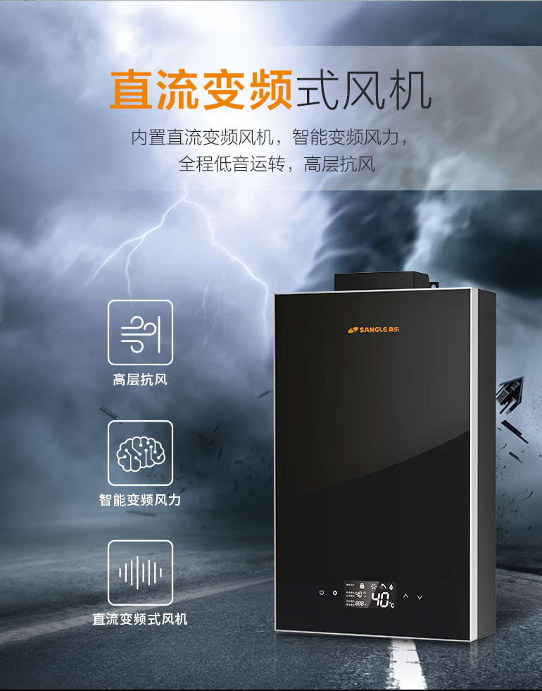 桑樂燃氣熱水器,采用直流變頻式風機,可實時監(jiān)測室外風壓變化情況,保證持續(xù)的氧氣供應,維持高效、充分、穩(wěn)定燃燒;自動調整輸出轉速來對抗外部風壓變化,快速實現恒定水溫,將波動范圍控制在±1℃,真正做到無感溫差,讓寶寶嬌嫩、敏感的肌膚不再受到水溫偏差的刺激,洗浴更舒適;智能風壓補償技術,頂驅式風機,抗風、抗凍,不懼狂風暴雪,最大可抗八級大風。