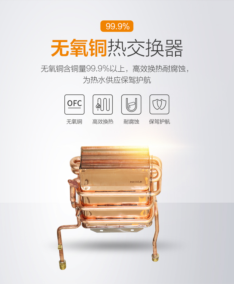 桑樂燃氣熱水器采用無氧銅(含銅量99.9%),是行業(yè)內公認的最好材質。銅材純度高,高效換熱,耐高溫、耐腐蝕、抗氧化。采用三環(huán)纏繞設計,極大的增大了導熱面積,提高加熱效率,升溫更快更節(jié)能,為熱水供應保駕護航。