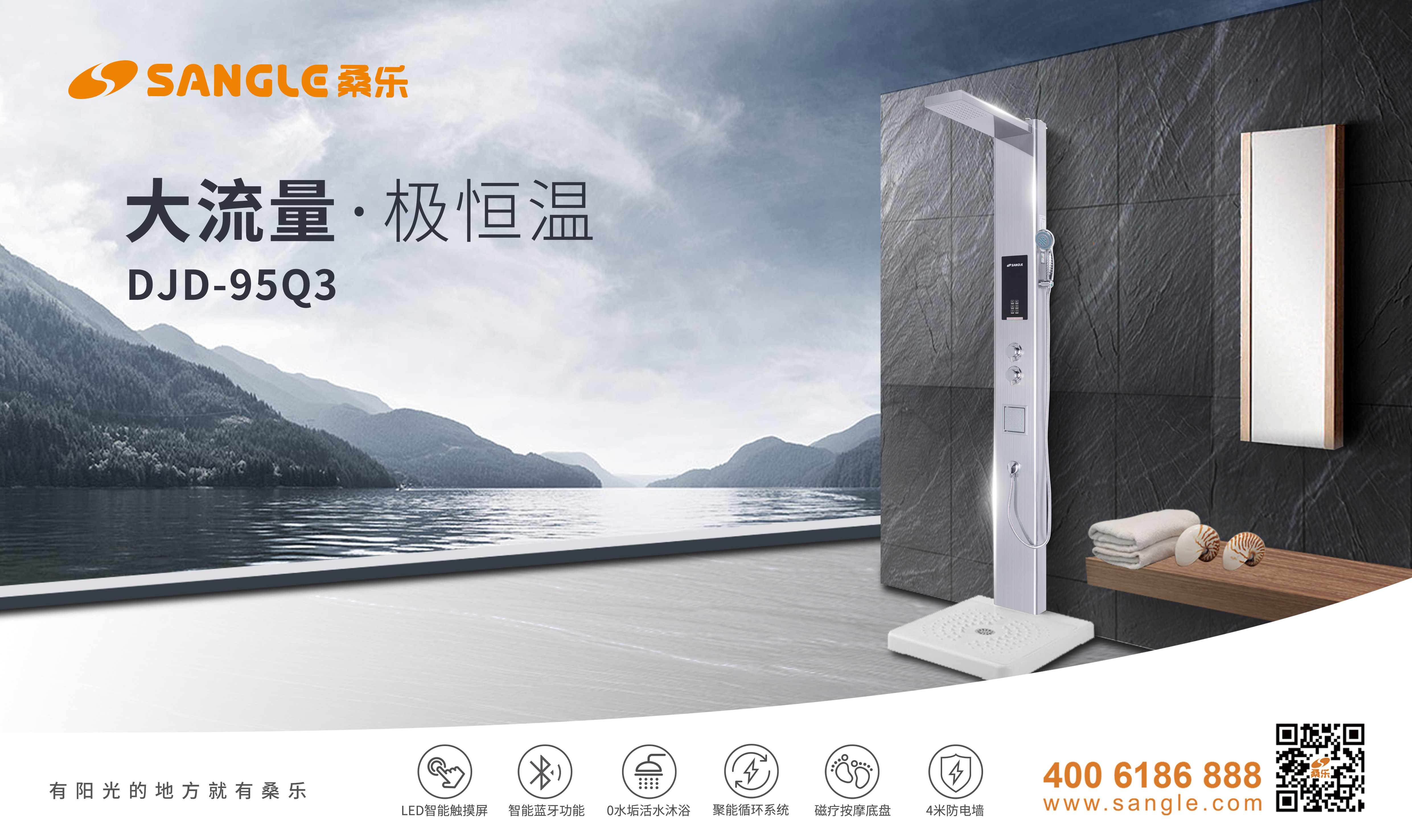 桑樂集團(tuán)2019年春季新品集成式熱水器,將創(chuàng)新技術(shù)與舒適體驗(yàn)完美結(jié)合,特來幫您解決這個(gè)難題。其中以DJD-95Q3為例,這款產(chǎn)品因?yàn)闆]有傳統(tǒng)熱水器的儲(chǔ)水容器,機(jī)身只有22cm,極大的縮減了占地面積,只要一個(gè)淋浴的地方足矣,而且整機(jī)采用SUS304不銹鋼一體拉伸,盡顯奢華時(shí)尚浴室。當(dāng)然作為一款熱水器最重要的還是其實(shí)用性,這款產(chǎn)品因內(nèi)膽容量小、預(yù)熱時(shí)間短,所以沒有長(zhǎng)時(shí)間預(yù)熱而導(dǎo)致的熱能量散失,即開即用的同時(shí)避免了能源浪費(fèi),真正做到了節(jié)能、省電、省水,這也是被眾多消費(fèi)者選擇的主要原因。同時(shí)它還采用了ECO高頻振蕩導(dǎo)熱技術(shù),在振蕩過程中消除水垢,實(shí)現(xiàn)無水垢環(huán)保運(yùn)行,保障熱效率持續(xù)穩(wěn)定不衰減。除此之外該產(chǎn)品還支持多種出水模式,頂噴SPA、瀑布SPA、手持花灑、側(cè)噴SPA隨意切換,只愿做您家里的免費(fèi)按摩師,單獨(dú)配備的磁療按摩底盤,更是讓用戶在沐浴的同時(shí)刺激足部穴位反射點(diǎn),對(duì)全身器官的反射穴位進(jìn)行磁療按摩,無疑是養(yǎng)生沐浴之首選。