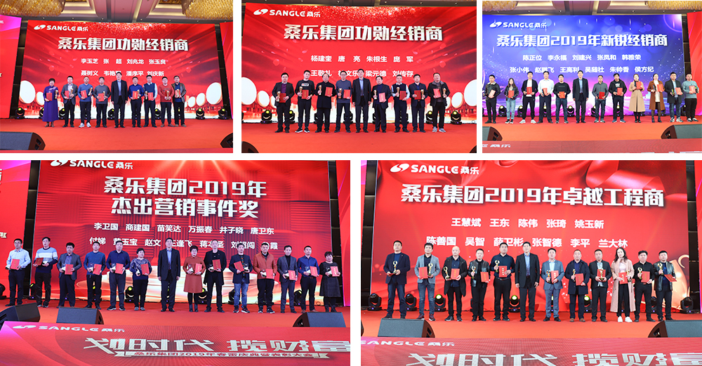 表彰慶典表彰作為本次會議的主旋律之一,從“桑樂集團功勛經(jīng)銷商表彰”拉開序幕,桑樂歷經(jīng)輝煌后負重前行再創(chuàng)佳績,離不開多年以來對桑樂事業(yè)一直精益求精勤奮耕耘的優(yōu)秀合作伙伴們。董事長為加盟超過20年且業(yè)績貢獻突出的經(jīng)銷商代表頒發(fā)了功勛經(jīng)銷商獎,現(xiàn)場掌聲雷動。隨后董事長頒發(fā)了營銷事件獎,從創(chuàng)新到創(chuàng)舉,超越自我、銳意進取的新銳經(jīng)銷商獎,用匠心兌現(xiàn)品質(zhì)承諾的工程經(jīng)銷商獎,以及桑樂真空管、廚電、速熱熱水器銷售冠軍獎。繼而,會上還為達成2019年簽約任務(wù)的經(jīng)銷商嘉賓頒發(fā)了2019年簽約達成表彰,除了簽約返利的兌現(xiàn),董事長還向完成鉆石、金牌、銀牌、優(yōu)秀等各等級的簽約經(jīng)銷商頒發(fā)了獎杯、證書和獎品。 與會經(jīng)銷商和集團員工為獲獎嘉賓送上了陣陣掌聲和祝賀。累計7大項近200人次的表彰與頒獎,是對桑樂全體經(jīng)銷商全年經(jīng)營工作的系統(tǒng)總結(jié)和梳理,也是對桑樂大家庭團結(jié)奮斗精神和堅守匠心理念的真實寫照。
