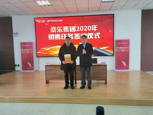 會議第二個環(huán)節(jié)是年度優(yōu)秀表彰環(huán)節(jié),董事長逐個為年度先進標兵和技術創(chuàng)新團隊頒獎,馮總,副總經理總廠廠長趙中強,總經理助理遲立群,總經理助理國升分別為優(yōu)秀員工頒獎。會議的第三個環(huán)節(jié),董事長同各銷售單位簽訂了2020年銷售任務書,通過全年銷售任務、零售任務、招商任務、重點品類銷售任務的簽約,集團全體人員目標清晰團結一致,共同向全面完成2020年集團任務吹響了沖鋒的號角。