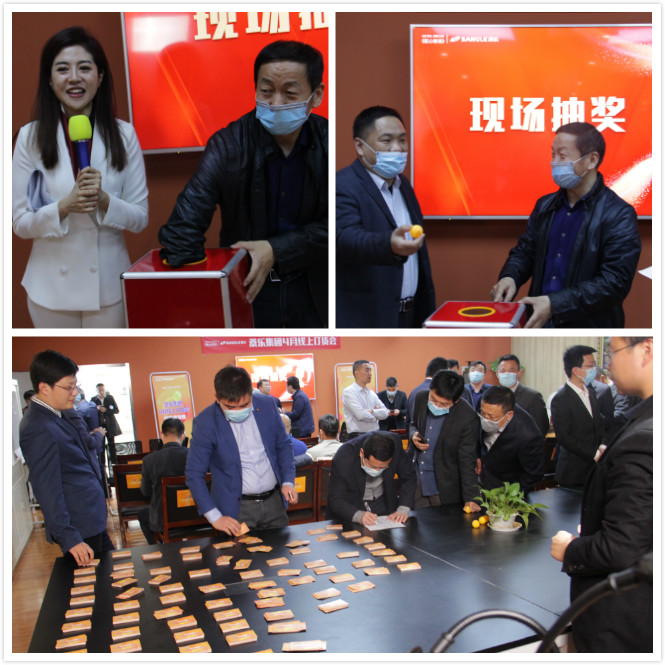隨后董事長分別對在頒發(fā)了“營銷先鋒獎(jiǎng)”、“優(yōu)秀經(jīng)銷商獎(jiǎng)”兩大獎(jiǎng)項(xiàng),獲獎(jiǎng)榮譽(yù)證書及獎(jiǎng)品由現(xiàn)場各區(qū)域分總代領(lǐng)并郵寄。隨后桑樂集團(tuán)常務(wù)副總經(jīng)理馮總給大家?guī)砹思瘓F(tuán)管理報(bào)告,號召全體桑樂人響應(yīng)董事長號召,完成五月六月線上營銷升級攻堅(jiān)戰(zhàn)。同往年春季客戶會一樣,集團(tuán)在會議上進(jìn)行了2020年春季新品的發(fā)布,集團(tuán)總經(jīng)理助理市場總監(jiān)國升和產(chǎn)品部丁海學(xué)給大家?guī)砹松沸缕飞铍娖?、廚房電器和電熱水器的新品發(fā)布儀式。另外,本次會議邀請了三位“營銷風(fēng)云人物”與集團(tuán)領(lǐng)導(dǎo)分別進(jìn)行了一對一互動(dòng)分享,交流線上營銷心得和經(jīng)驗(yàn)。隨著現(xiàn)場抽獎(jiǎng)券發(fā)放完畢,本次線上客戶會圓滿完成。
