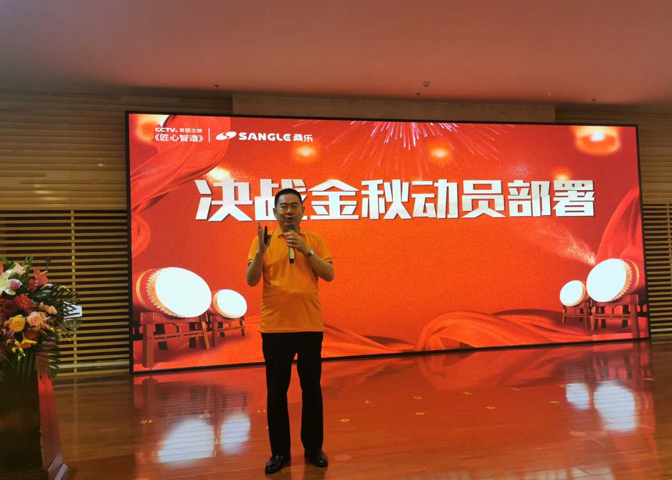 桑樂集團副總經(jīng)理張興東做決戰(zhàn)金秋部署動員報告,希望大家緊跟集團步伐,線上多宣傳,線下促成交,開啟桑樂“新零售”模式;城鄉(xiāng)結合,借鄉(xiāng)村愛情宣傳,深入鄉(xiāng)村訂貨,把村級活動搞起來;最后,預祝大家借助黃金旺季,再掀桑樂銷貨狂潮。