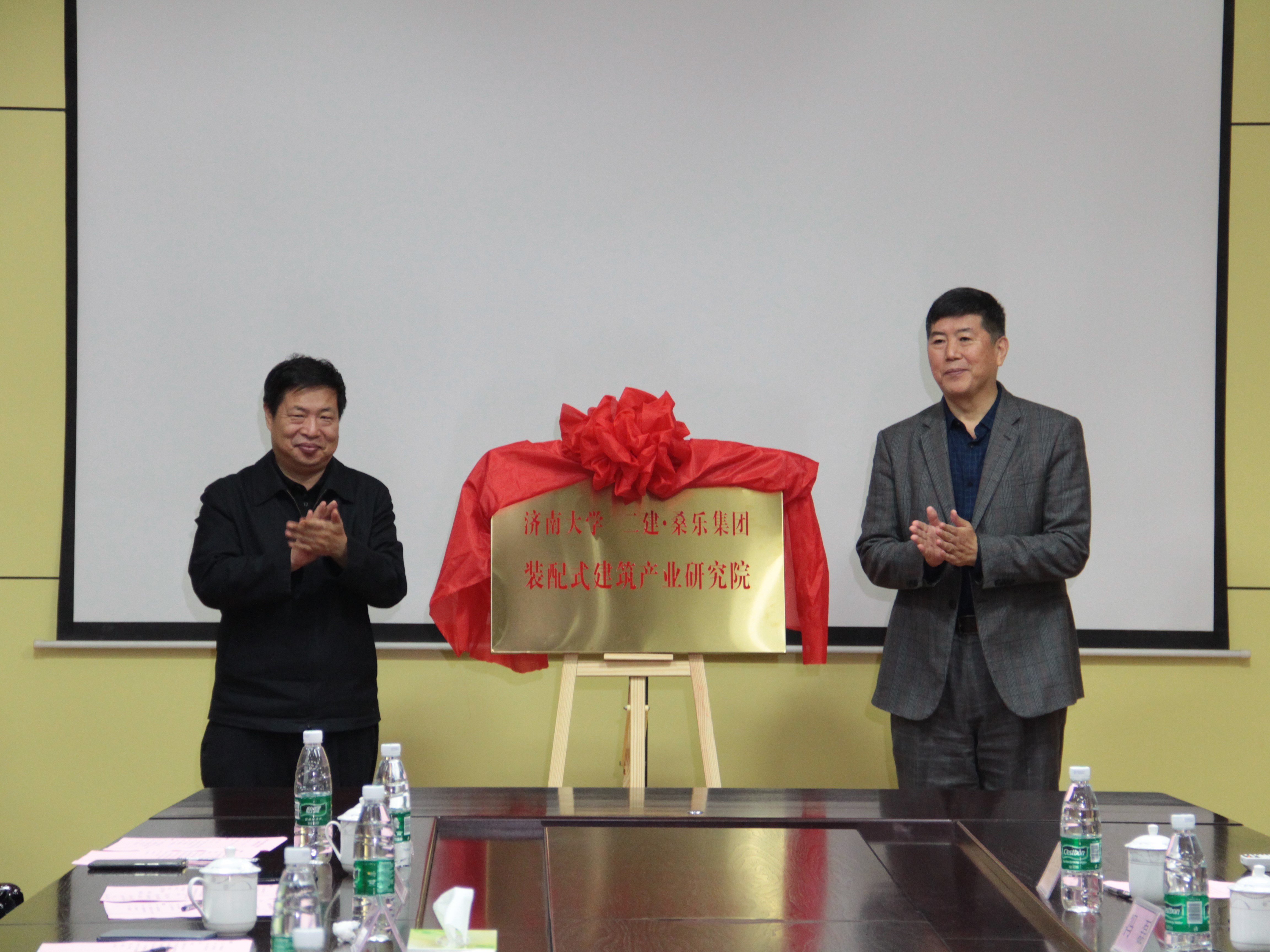 濟南大學黨委書記徐景顏與集團董事長王雪廣共同為濟南大學、二建.桑樂集團裝配式建筑產(chǎn)業(yè)研究院揭牌