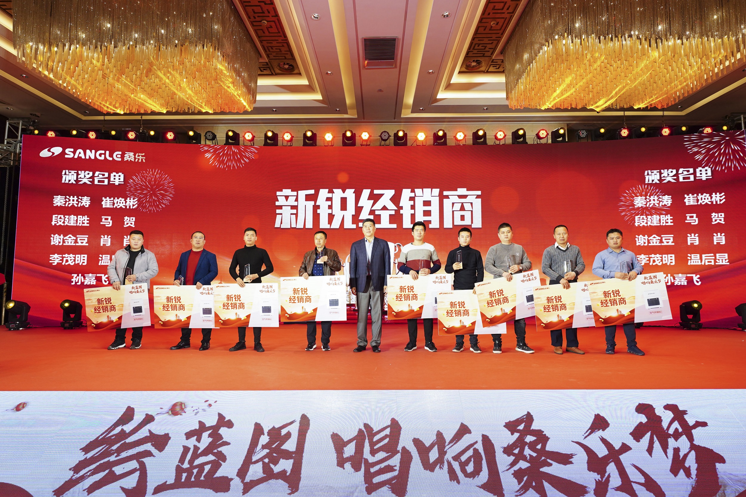 為感謝經(jīng)銷商今年對桑樂做出的突出貢獻(xiàn),現(xiàn)場進(jìn)行了隆重的表彰儀式。首先,董事長為完成2020年簽約達(dá)成的經(jīng)銷商依次頒發(fā)鉆石、金牌、銀牌、優(yōu)秀的簽約表彰獎(jiǎng)。隨后,董事長頒發(fā)了新銳經(jīng)銷商獎(jiǎng),5G銷售標(biāo)兵獎(jiǎng),卓越工程經(jīng)銷商獎(jiǎng)以及桑樂真空管、電熱水器、速熱熱水器、廚電銷售冠軍獎(jiǎng)。除此之外,董事長為加盟超過20年且業(yè)績貢獻(xiàn)突出的經(jīng)銷商代表頒發(fā)了功勛經(jīng)銷商獎(jiǎng)?,F(xiàn)場掌聲雷動,累計(jì)頒發(fā)了7項(xiàng)大獎(jiǎng),表彰近200人次,一個(gè)個(gè)獎(jiǎng)項(xiàng)背后是無數(shù)人同心協(xié)力,同甘共苦的成果,凝聚著桑樂人的智慧汗水。