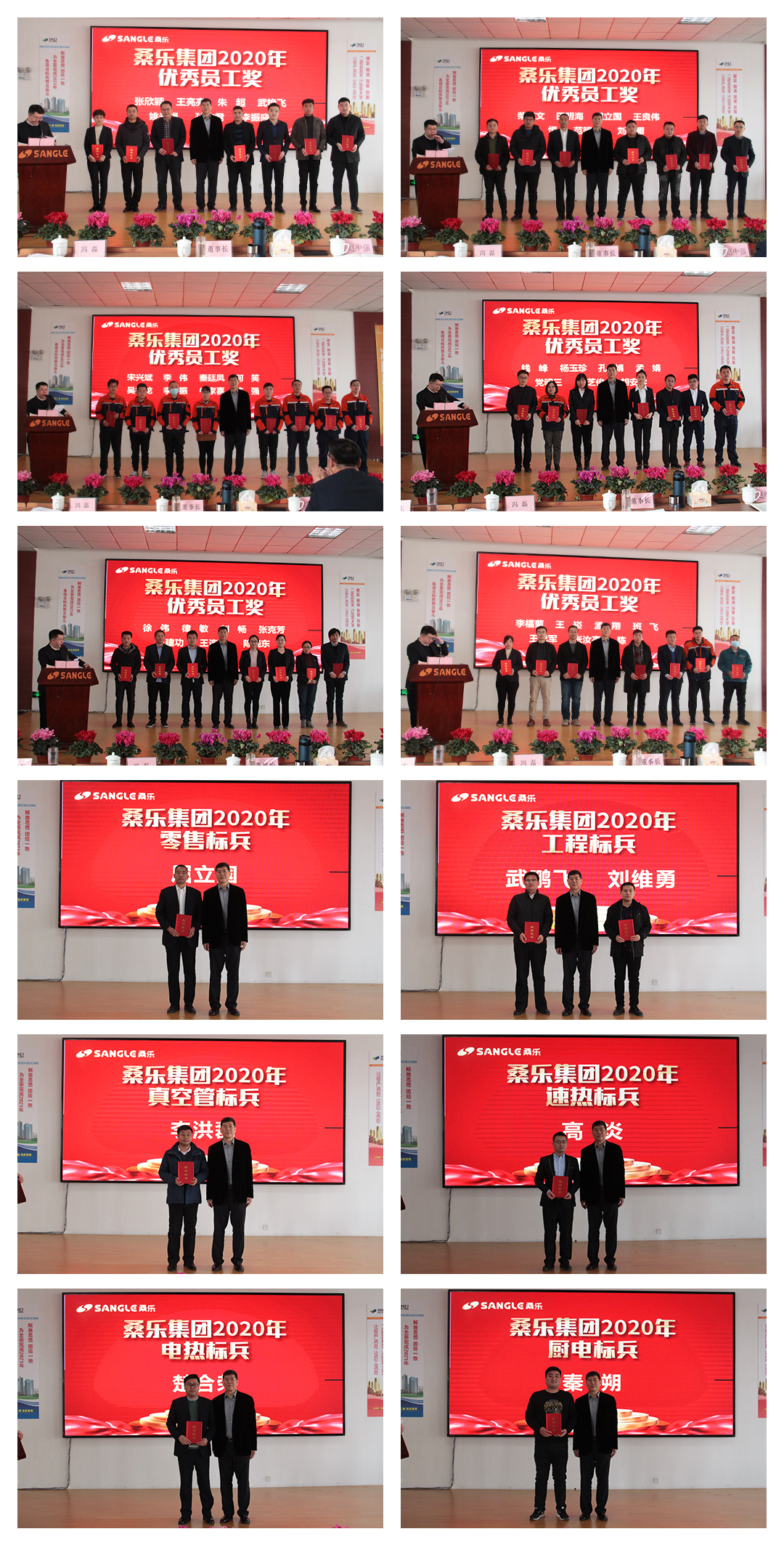 大會對2020年優(yōu)秀員工、零售標兵、工程標兵、真空管標兵、速熱標兵、電熱標兵、廚電標兵等先進個人進行表彰,董事長為獲獎人員頒發(fā)榮譽證書,鼓勵大家在2021年繼續(xù)努力,在各自崗位上取得更大成績。