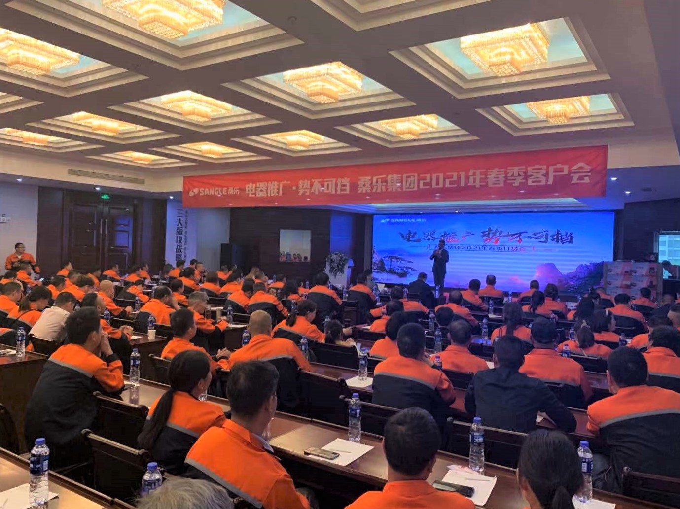 4月26日-27日,“電器推廣 勢不可擋”—桑樂集團2021年春季訂貨會在黃山錦園國際酒店隆重召開。董事長王雪廣與杭州、江蘇、廣州分公司230余名優(yōu)秀經(jīng)銷商相約黃山,共度時光盛宴,共話財富未來。