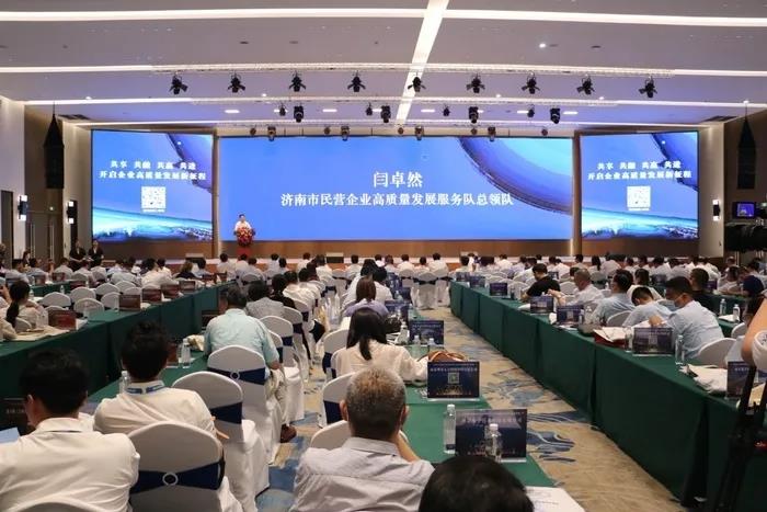 活動(dòng)中,濟(jì)南市民營企業(yè)高質(zhì)量發(fā)展服務(wù)隊(duì)牽頭組建的“百家企業(yè)聯(lián)盟”正式啟動(dòng)。濟(jì)南市人大常委會(huì)副主任李勝利,濟(jì)南市政協(xié)副主席、工商聯(lián)主席劉夢海出席活動(dòng)。參加本次活動(dòng)的還有濟(jì)南市民營經(jīng)濟(jì)發(fā)展局局長靳磊,共青團(tuán)濟(jì)南市委副書記孫華,濟(jì)南市工業(yè)和信息化局總經(jīng)濟(jì)師張巖,槐蔭區(qū)副區(qū)長潘興華,槐蔭區(qū)政協(xié)副主席、工商聯(lián)主席李宗孝以及市、區(qū)有關(guān)部門和企業(yè)代表。